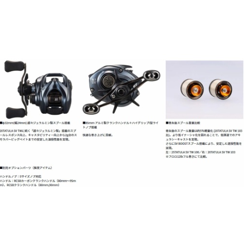 TATULA第3世代の次世代ワールドスタンダードデビュー! Φ32mm 超々ジュラルミンスプールに、TATULAシリーズ初のSV BOOSTをインストール。 突き抜ける遠投性能&トラブルレス性能を両立し、真のバーサタイル性能を追求。 高い初期性能が長く続くことを目指した設計思想「HYPERDRIVE DESIGN」を実装し、回転性能をさらに磨き上げ、強く滑らかな巻きを実現。 TATULA第3世代の次世代ワールドスタンダードモデル。 セーフティーさと後半の伸びを両立するスーパーバーサタイルリール。 高い基本性能を磨き込み、巻上げ性能も大幅UP。 TATULAシリーズの核であるタフコンセプト踏襲! |